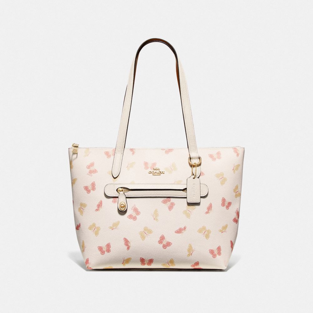 Perfect for every day, the Taylor is a minimalist tote in durable coated canvas printed with our graceful butterfly motif inspired by our love of nature and the freedom of the open road. This spacious design has interior phone and zip pockets for maximum organization, an exterior pocket to keep essentials close at hand and secures with a zippered closure.
