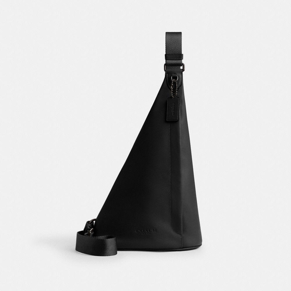 COACH®,Triangle Sling Bag,Leather,Slingback,Logo,Engraved Detail,Casual,Black,Front View