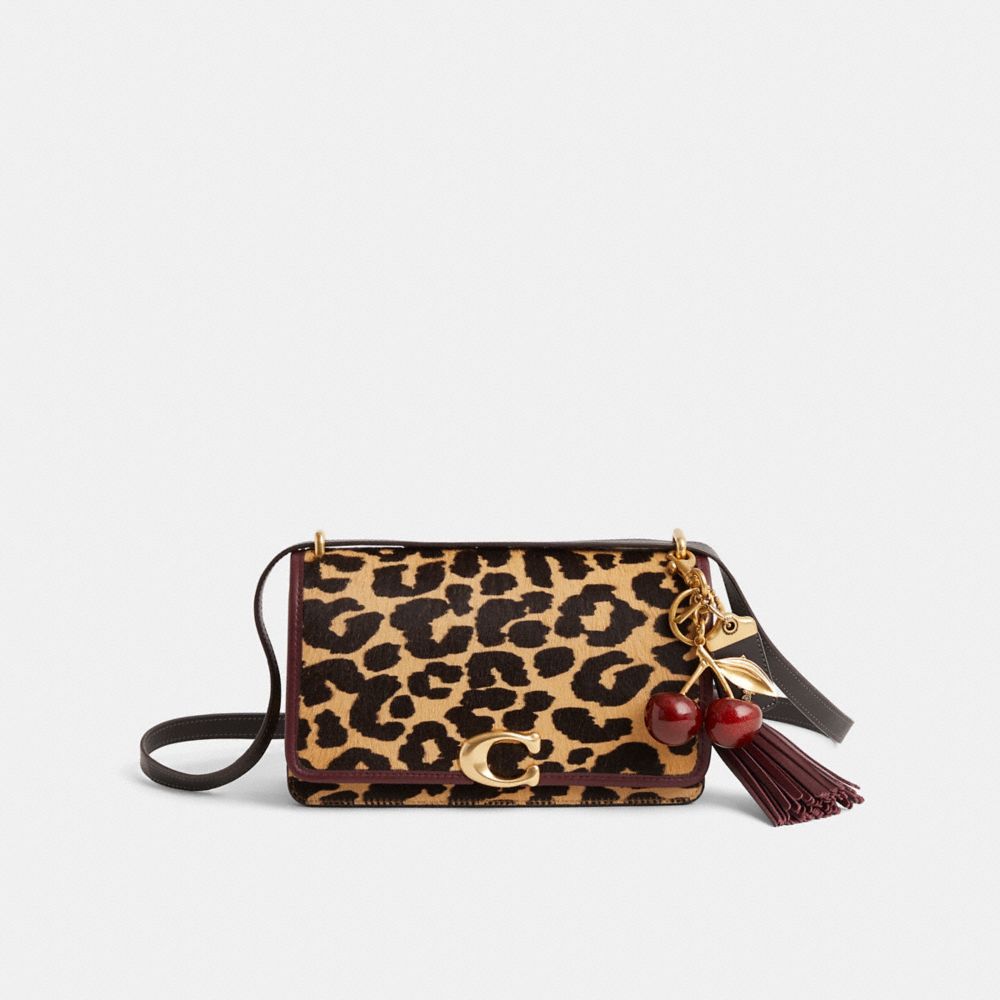Reimagined by Savannah Sutton with a bit of color contrast for rich dimension and a sharp graphic edge, this foldover style has been expertly cleaned, conditioned and restored. Our talented craftspeople Nicole Izquierdo and Yngrid Pichardo Baez applied pop binding and a matching swingy tassel, then added a playful repurposed charm. Detailed with our C pushpin closure, the flap front Bandit is crafted of buttery soft glovetanned leather and luxe silky haircalf printed with a bold leopard pattern inspired by archival 1960s designs of Bonnie Cashin, our first lead designer. It features two organized compartments, a secure interior snap pocket and a shoulder strap that adjusts for crossbody wear.