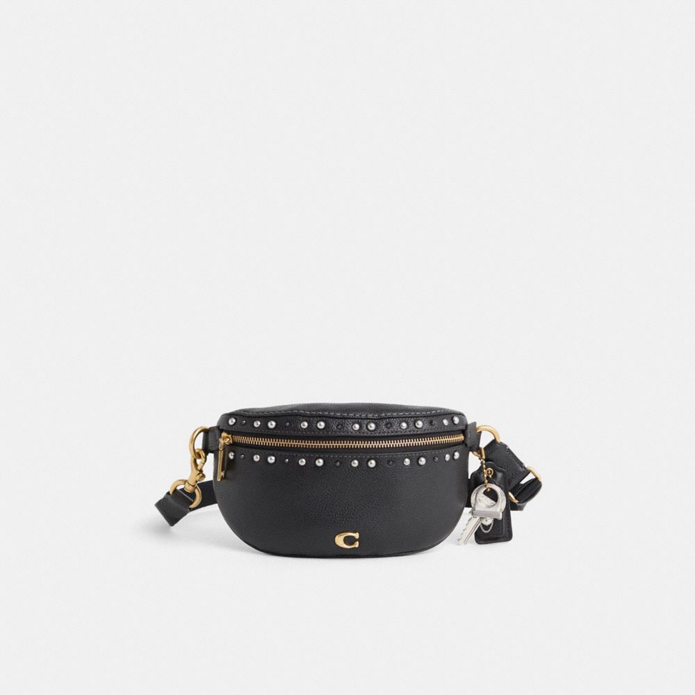 Reimagined with striking border rivet detailing featuring mixed-metal studs and pearly cabochons by Eunice Chang, this hands-free style has been expertly cleaned, conditioned and restored. Our talented craftsperson Lucas Ortiz hand-decorated the front with a medley of polished embellishments, refreshed the Signature hardware, repaired the stitching on back and base, then added a playful repurposed charm. An update of a street-ready design, the ultra-convenient Bethany belt bag keeps your essentials organized. Crafted of polished pebble leather detailed with our Signature hardware, wear it cinched at the waist, over the shoulder or draped crossbody for a versatile look.
