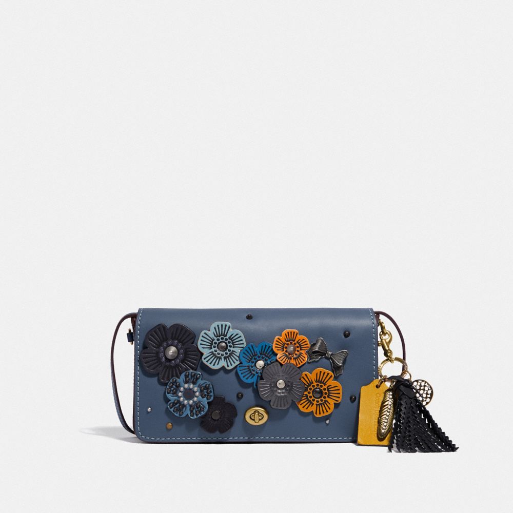 Reimagined by Ashley Peng with a colorful dimensional Tea Rose appliqué and rivets, this compact crossbody has been expertly cleaned, conditioned and restored. Our talented craftsperson Freddy Leonardo embellished it with die-cut hand-painted leather blooms decorated with metal hardware and a playful repurposed charm in a process that took over 2 hours to complete. First introduced in 1973, "the little bag that could" (and did) is a longtime Coach favorite, thanks to its minimalist crossbody-to-clutch design. It's crafted in smooth glovetanned leather with a contrast lining.