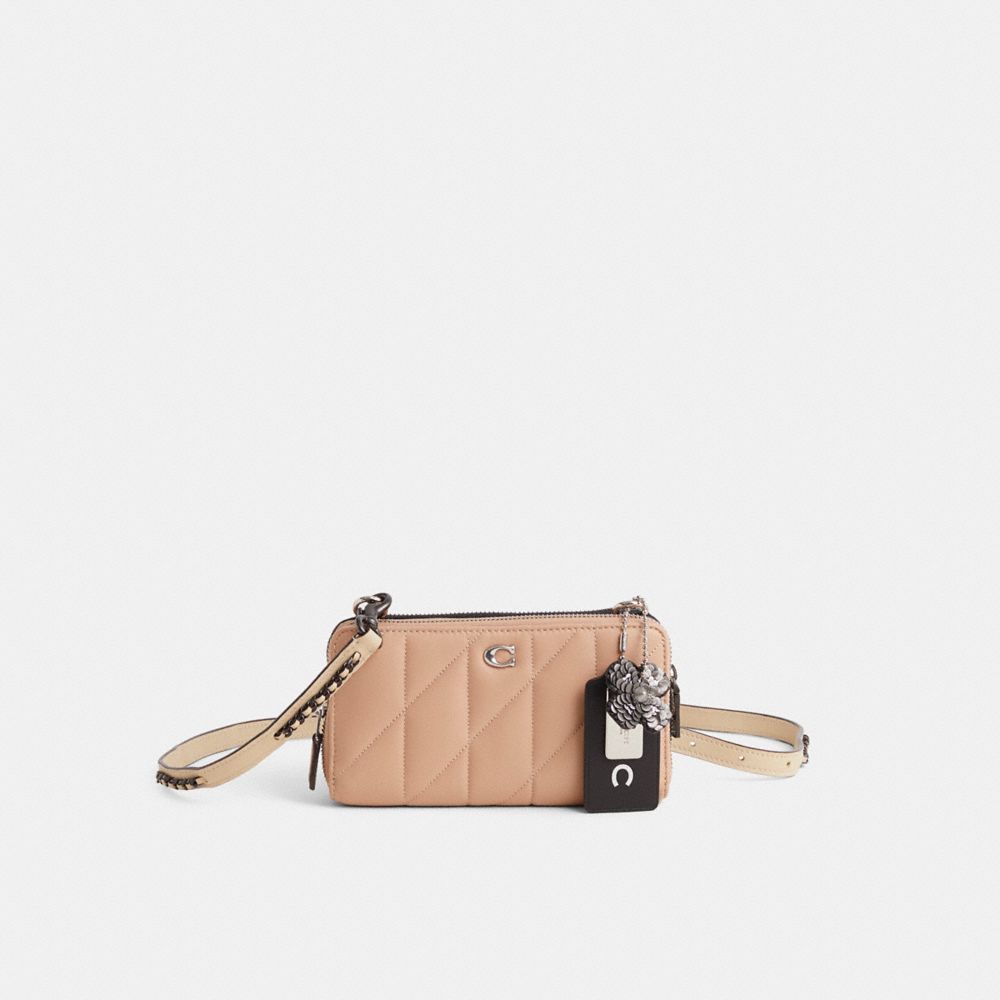 Reimagined as a sophisticated crossbody and shoulder bag design by Lucas Ortiz with double the space and double the organization, this hybrid style has been expertly cleaned, conditioned and restored. Our talented craftsperson Nicole Izquierdo sewed two wallets back-to-back, attached anchors between them to affix the silvery chain strap and long leather strap, repaired edgestain and the Signature wallet zipper slider, then added a zipper pull and a playful repurposed charm. Crafted of luxe quilted nappa leather, Signature jacquard and leather, each wallet unzips to reveal a spacious interior and features 12 card slots, two full-length bill compartments and a coin pocket.