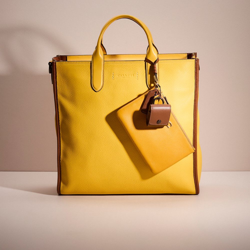 Pre-owned and now (re)loved, this Gotham Tall Tote Bag is a very special Coach upcrafted design inspired by our commitment to rethinking and reducing our impact on the planet. Saved from the landfill, this gently-worn bag was lovingly repaired and transformed by our in-house craftspeople who added clever details to give it a second life. It’s completely one-of-a-kind, and comes with its own unique set of charms. Wear it, love it, pass it on.