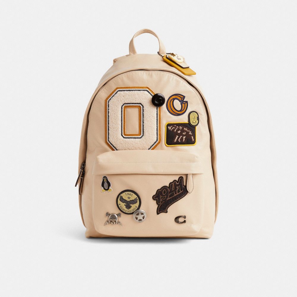 Reimagined with a sporty Varsity vibe by Savannah Sutton featuring a cool collection of dynamic patches and pins, this hands-free style has been expertly cleaned, conditioned and restored. Our talented craftsperson Angel Penaloza hand-decorated the front with distinctive Coach patches, refreshed the zipper tape and added a playful repurposed charm. Our Hall is a versatile backpack that has space for a 16” laptop, interior organization pockets and an exterior pocket for easy access to essentials. Featuring our Signature hardware and adjustable shoulder straps, it’s crafted of our pliable, lightest weight leather with a smooth, soft finish.