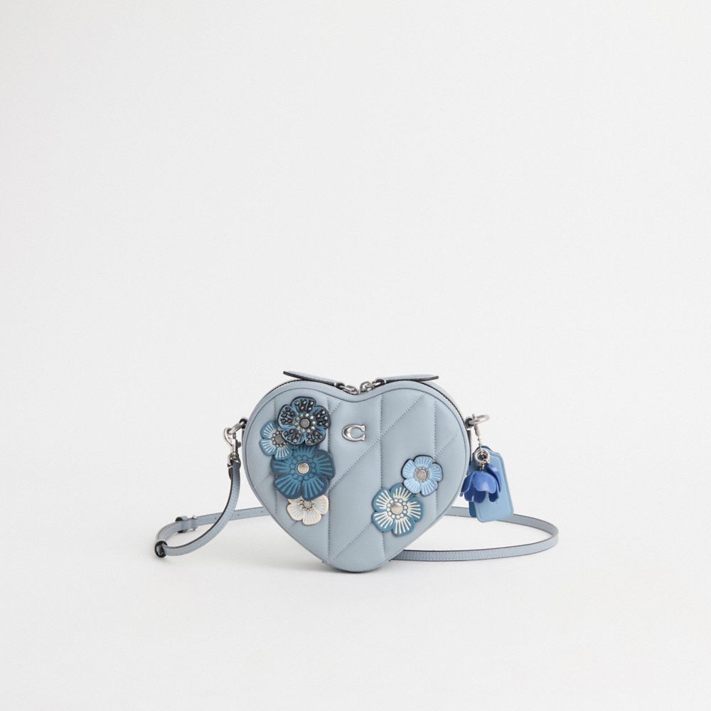 Reimagined by Eunice Chang with clusters of our dimensional Tea Rose appliqué in a dreamy coastal-inspired color palette, this crushworthy style has been expertly cleaned, conditioned and restored. Our talented craftsperson Jose Reyna embellished the front with die-cut leather blooms, replaced the zipper pull and added a playful repurposed charm. Playfully romantic, this heart-shaped crossbody is crafted of quilted nappa leather detailed with our Signature hardware. It’s ready for a day or night out with room for all the essentials.