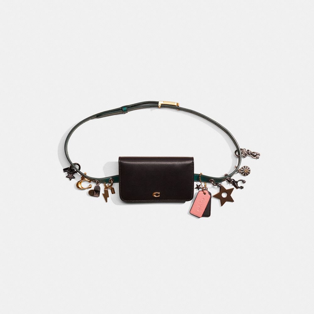 Reimagined as a bejeweled belt bag by Eunice Chang, this hybrid style has been expertly cleaned, conditioned and restored. Our talented craftspeople Antonio Hernandez and Jose Montero attached back belt loops to the leather card case, then threaded it onto a leather belt highlighted with distinctive Coach charms. Detailed with our Signature hardware, this refined leather card case features multiple card slots, pockets inside and out and a secure snap closure.