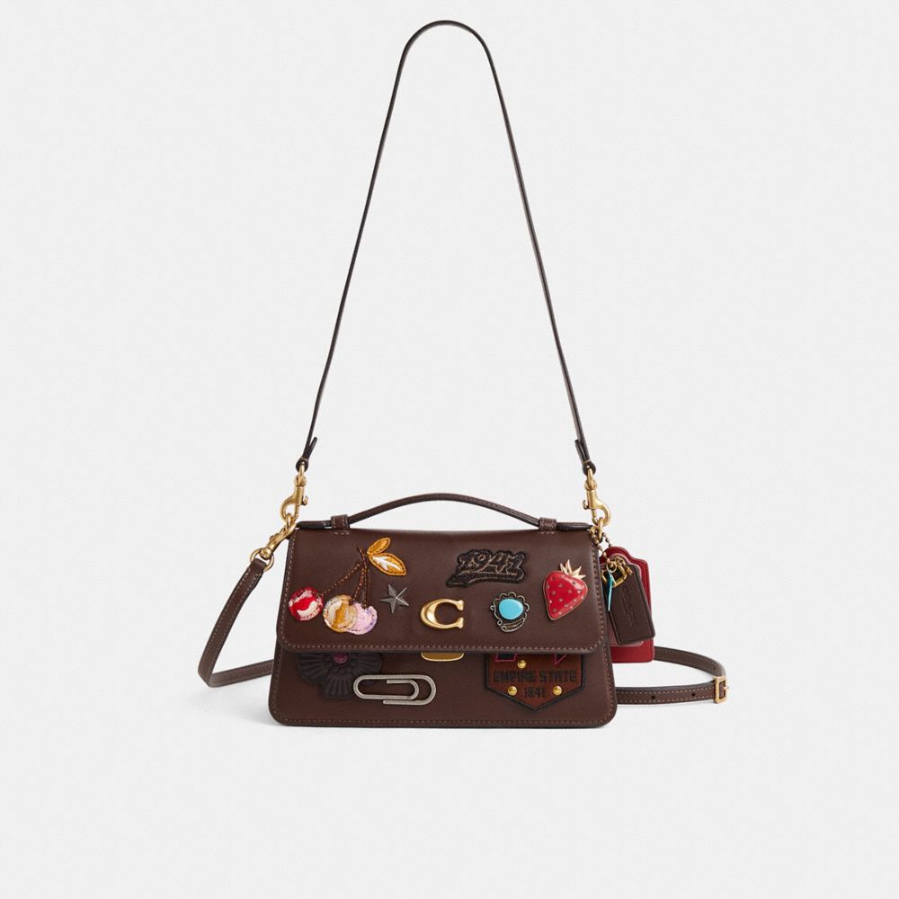 Reimagined with playful patches and pins by Eunice Chang for a whimsical Varsity vibe, this flap-front style has been expertly cleaned, conditioned and restored. Our talented craftsperson Angel Penaloza hand-decorated the flap and front with a collection of eclectic embellishments, refreshed the flap underside, then added a playful repurposed charm. The Juno adds instant sophistication to any look with its structured silhouette. Crafted of buttery soft glovetanned leather detailed with our Signature hardware, it features pockets inside and out for easy organization. Carry the top-handle design by hand, or wear as a shoulder bag and crossbody with the detachable straps.