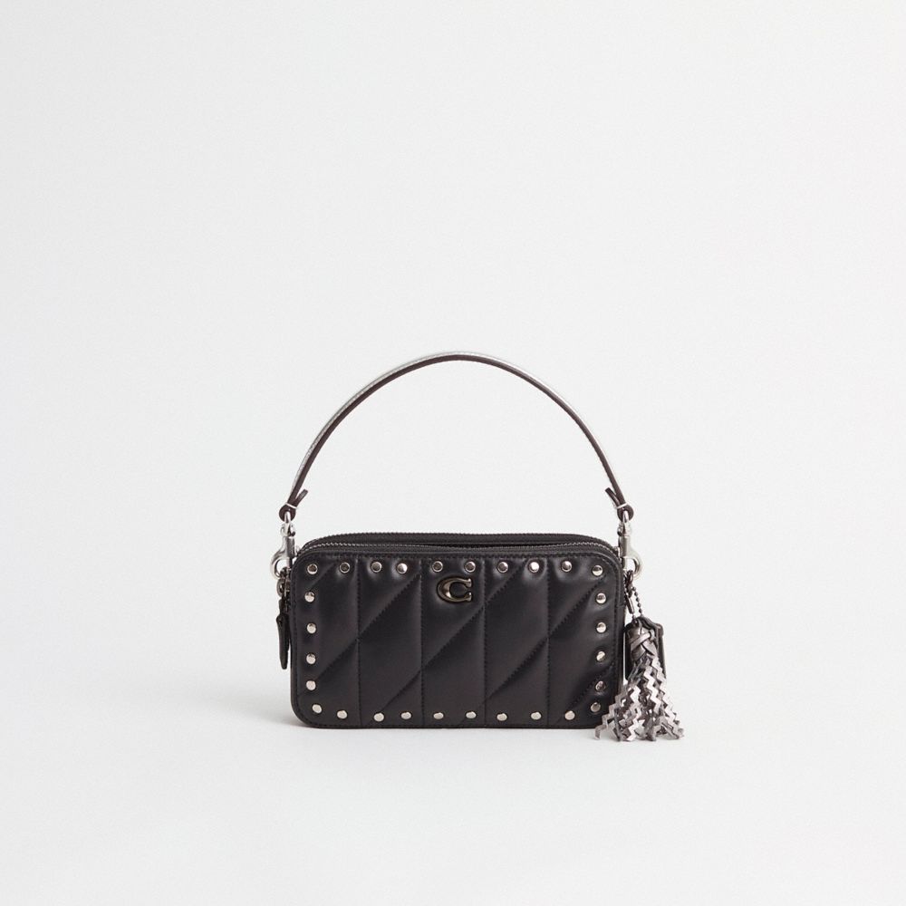 Reimagined with striking border rivets for a sophisticated high-shine finish by Eunice Chang, this zip-top style has been expertly cleaned, conditioned and restored. Our talented craftsperson Nicole Izquierdo hand-decorated the front with silvery studs, then added a pop color handle and a playful repurposed charm. Our perfectly sized Kira can be worn as a crossbody, a wristlet, carried as a clutch or used as a pouch in a larger bag. Crafted of plush, quilted nappa leather, it has two zippered compartments and a convenient center slip pocket to keep you organized with room for a phone, cards, keys and other accessories.