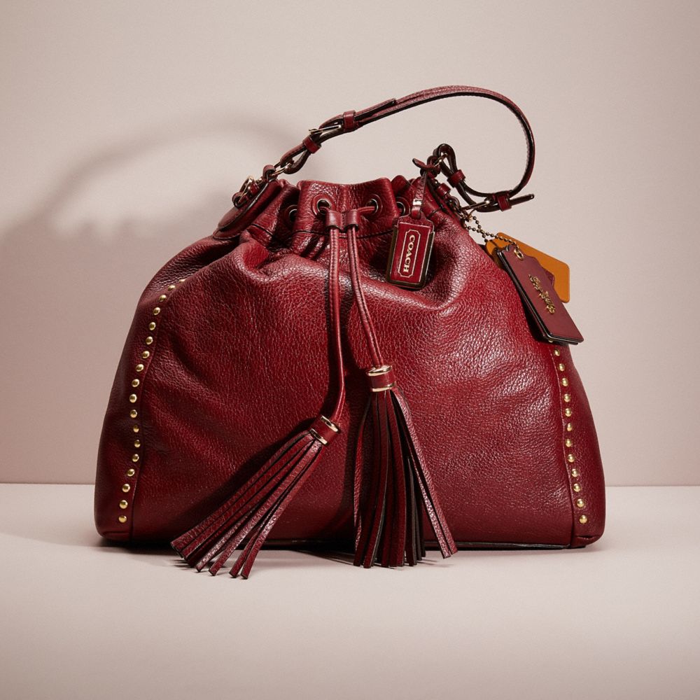 Reimagined by Nikita M’Bouroukounda with gleaming border rivets for a touch of shine, this roomy drawstring design has been expertly cleaned, conditioned and restored. Our talented craftsperson Angel Penaloza embellished it by hand with polished studs, repaired the edgepaint and added a playful repurposed charm. Spacious and functional, our buttery-soft leather Madison is finished with custom Coach hardware, a detachable shoulder strap and raw-edged tassels.