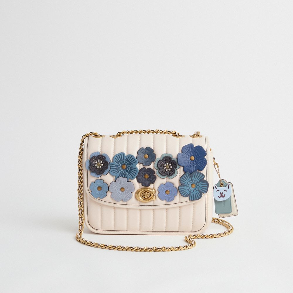 Reimagined by Savannah Sutton with a medley of our dimensional Tea Rose appliqué in a dreamy coastal-inspired color palette, this flap-front style has been expertly cleaned, conditioned and restored. Our talented craftsperson Jose Reyna hand-decorated the flap with die-cut leather blooms anchored by gleaming rivets and polished studs, then added a playful repurposed charm. The Madison is a timeless style with modern proportions. Crafted of quilted nappa leather and smooth leather, it's finished with an exterior pocket for easy access to essentials and our Signature turnlock closure. Convert the leather chain strap from long to two short handles.