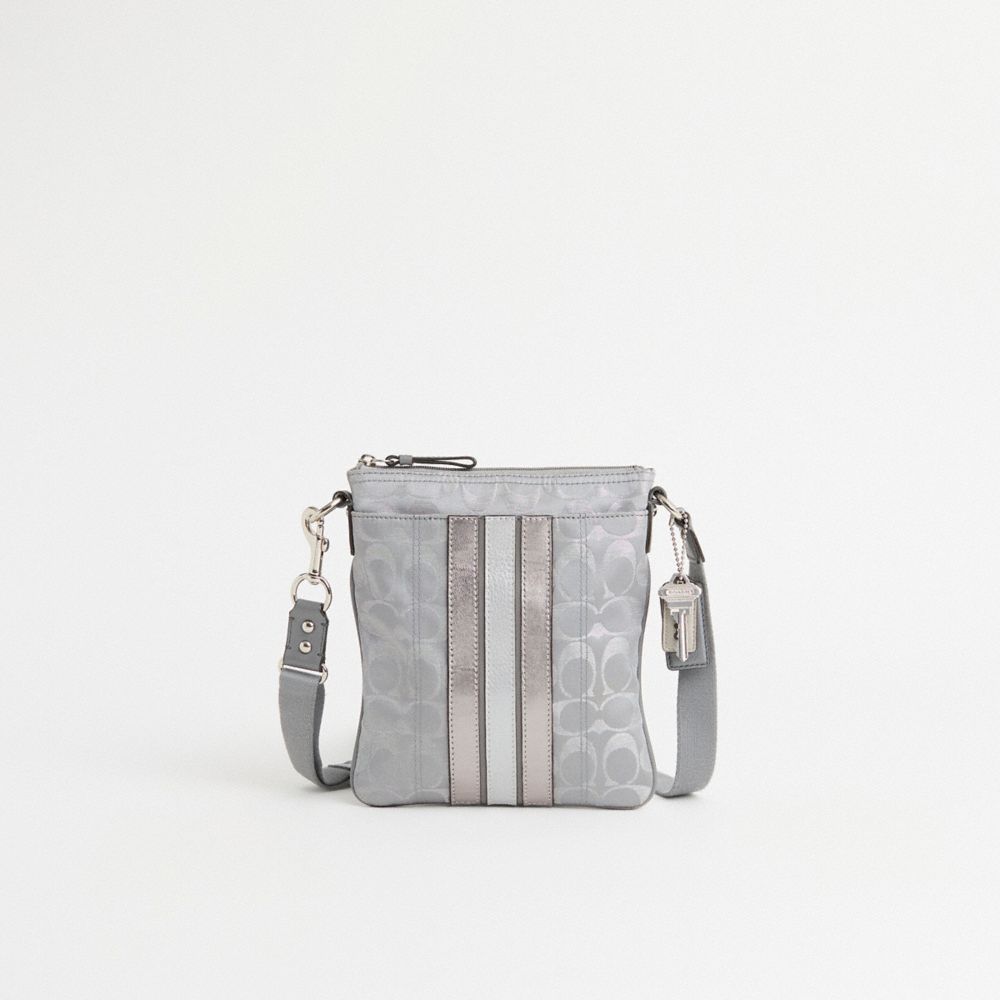 Reimagined with an exotic take on our sporty Varsity Stripe by Rose Oliva, this hands-free style has been expertly cleaned, conditioned and restored. Our talented craftspeople Nicole Izquierdo and Yngrid Pichardo Baez hand-decorated the front with an embossed leather Coach Varsity Stripe in matching tonal hues, applied our Signature script patch to the back and a heart patch to the interior, then added a playful repurposed charm. The perfect on-the-go bag, our Mia is crafted of Signature canvas and has an open interior with a secure zip-top closure and an outside slip pocket.