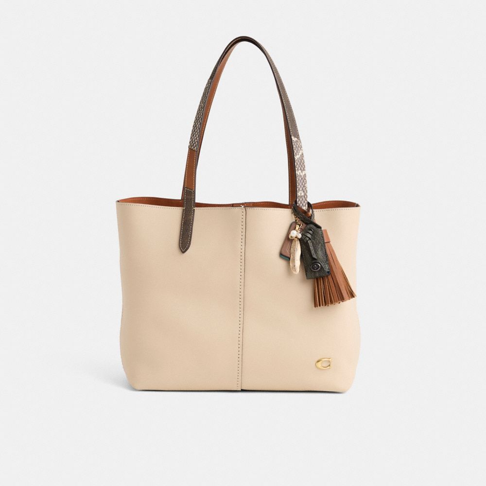 Pre-owned and now (re)loved, this North Tote Bag 32 is a very special Coach upcrafted design inspired by our commitment to rethinking and reducing our impact on the planet. Saved from the landfill, this gently-worn bag was lovingly repaired and transformed by our in-house craftspeople who added clever details to give it a second life. It’s completely one-of-a-kind, and comes with its own unique set of charms. Wear it, love it, pass it on.