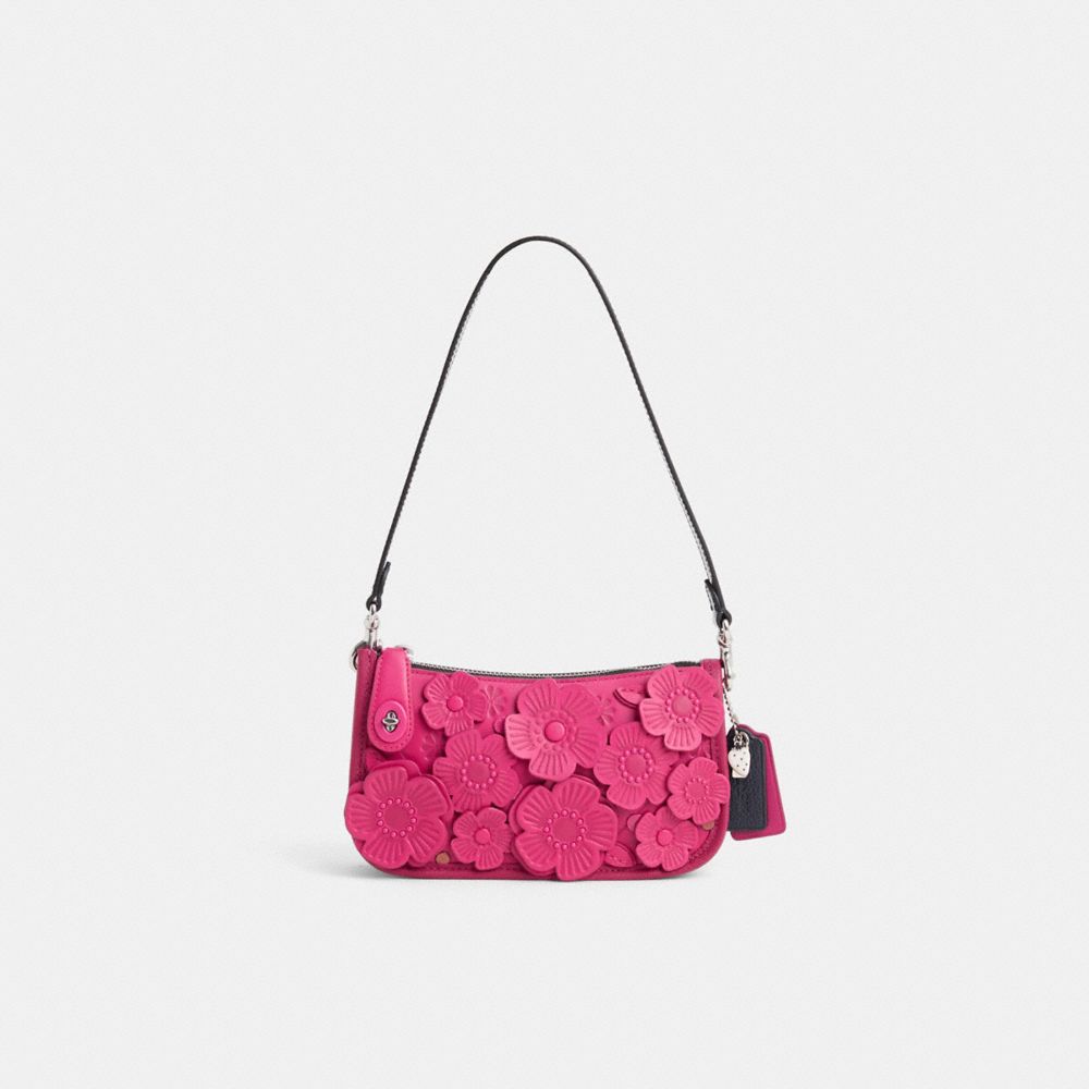 Blooming with an abundance of our dimensional Tea Rose appliqué in a bright pink color palette by Eunice Chang, this slim style has been expertly cleaned, conditioned and restored. Our talented craftspeople Jose Reyna, Alfred Deaza and Yngrid Pichardo Baez applied a pink leather panel embellished with die-cut blooms, affixed sweet hearts to the interior, repaired the turnlock, then added a short strap and a playful repurposed charm. Inspired by archival Coach Y2K designs but perfected for today, our Penn bag is effortlessly minimalist. Finished with our iconic turnlock closure on the zipper pull, the buttery soft glovetanned leather style can be worn on the shoulder or carried as a clutch.