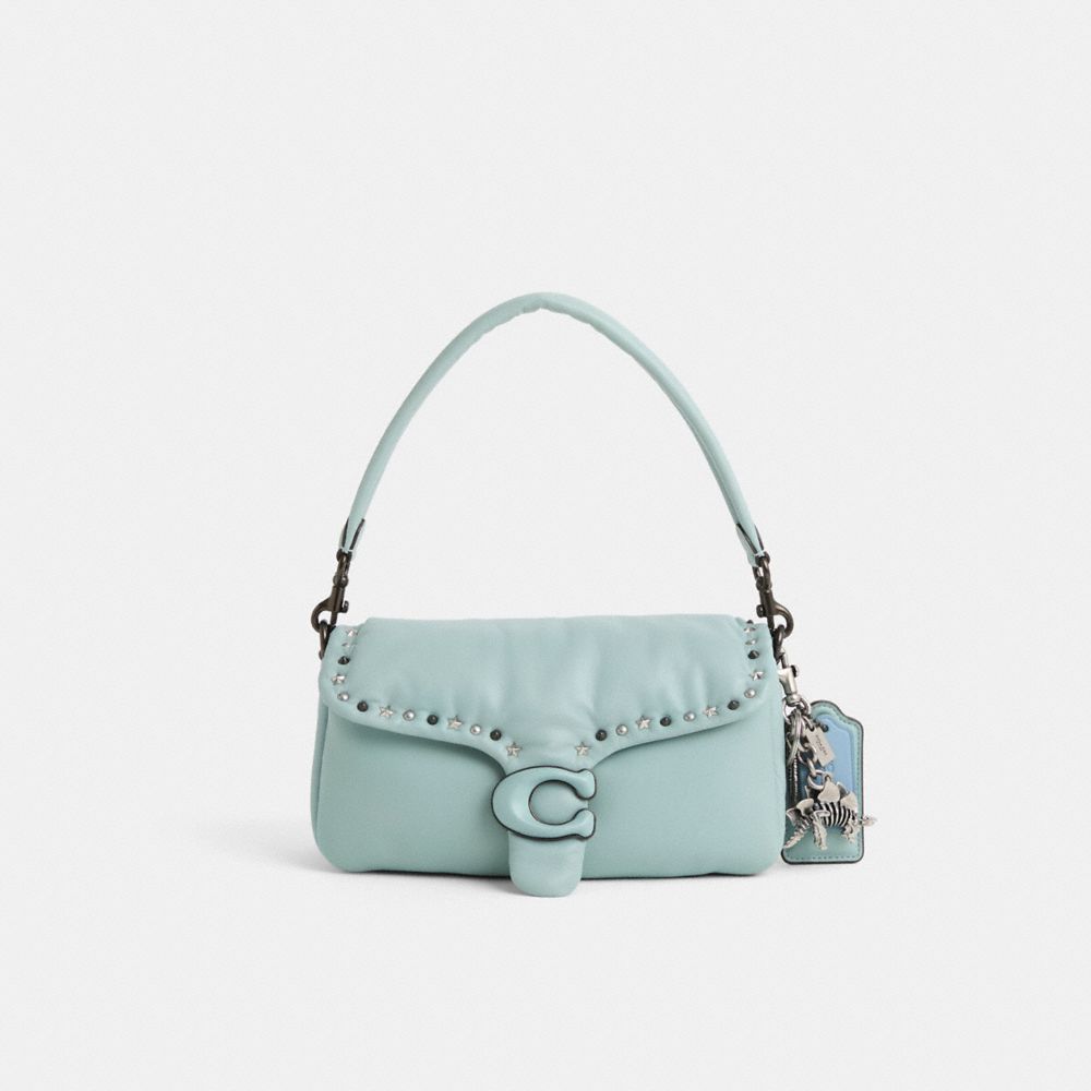 Reimagined by Eunice Chang with striking rivet detailing featuring gleaming silvery studs and pearly cabochons for a sophisticated vibe, this flap-front style has been expertly cleaned, conditioned and restored. Our talented craftspeople Nicole Izquierdo and Fernando Gutierrez hand-decorated the flap with mixed border embellishments, painted the Signature hardware and bottom, then added a playful repurposed charm. The Pillow Tabby reimagines the structured silhouette of an archival 1970s Coach design with plush, ultra-soft leather and wrapped Signature hardware. The compact 26 features two detachable straps to carry by hand, style as a short shoulder bag or wear crossbody.