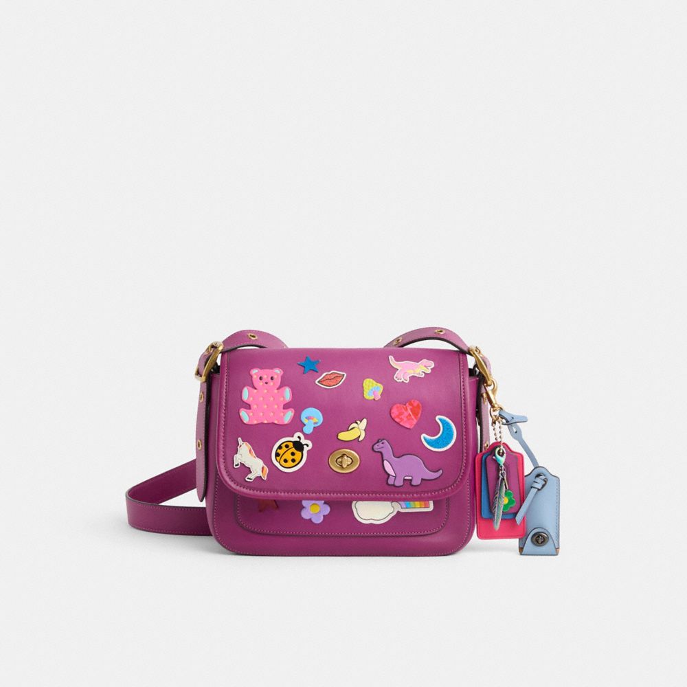 Playfully reimagined with loads of free-spirited Coach sticker patches bursting with color and fun by Rose Oliva, this flap-front style has been expertly cleaned, conditioned and restored. Our talented craftsperson Nicole Izquierdo embellished the flap, front, bottom and sides with salvaged Coach adhesive leather stickers, then added a playful repurposed charm. A modern nod to an iconic 1967 Coach collection, this Rambler crossbody bag is crafted of glovetanned leather and is finished with our iconic turnlock closure. The open compartment design has space for an iPad mini and interior pockets to secure valuables, convenient exterior slip pockets and an adjustable strap to wear on the shoulder or crossbody.