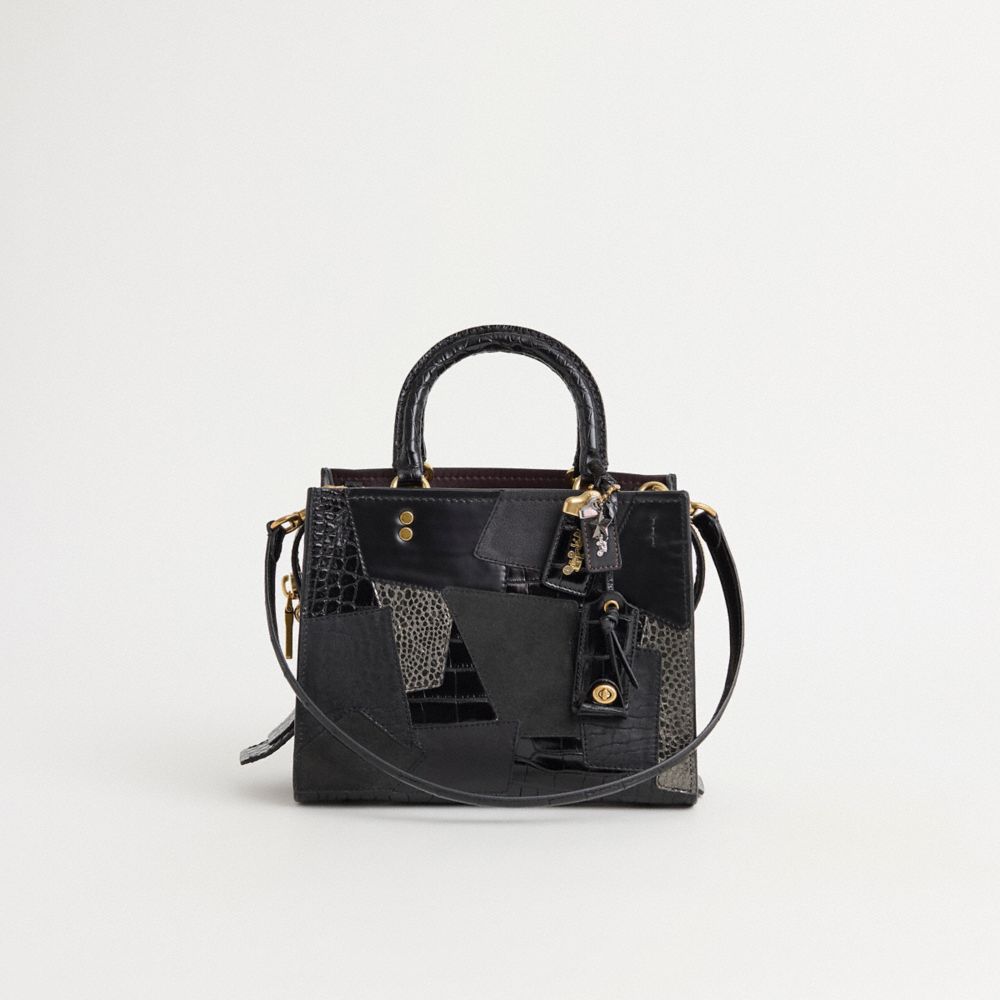 Reimagined by Savannah Sutton with an exotic textural patchwork featuring a mix of luxe leathers and genuine alligator in dramatically dark and shimmering silver hues, this top handle style has been expertly cleaned, conditioned and restored. Our talented craftspeople Nicole Izquierdo, Alfred Deaza and Yngrid Picardo Baez embellished the front with Coach remnant materials, replaced the edge binding and added a playful repurposed charm. Inspired by free spirits, rebels and dreamers, the aptly named Rogue is a go-anywhere bag. The 25 is crafted of luxurious genuine alligator.