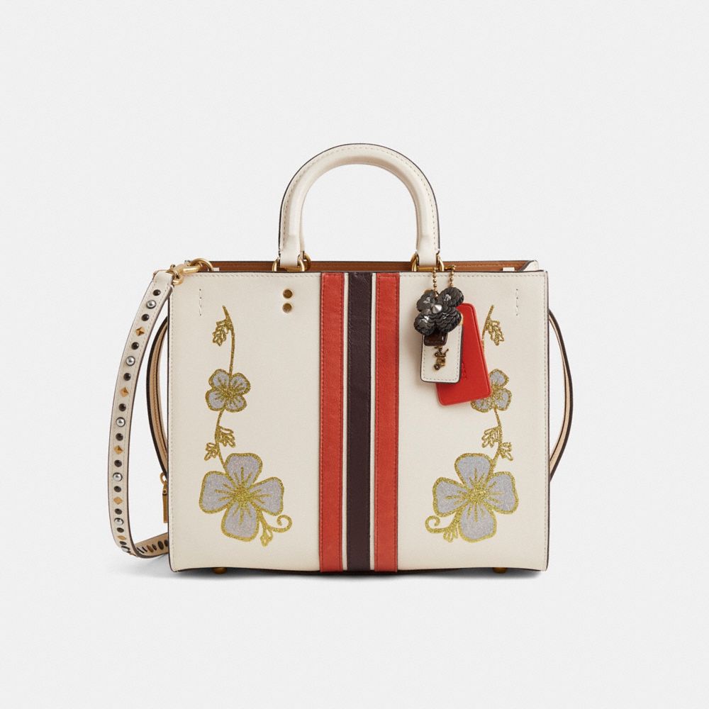 This special-edition Rogue Bag celebrates 10 years of Rogue. Reimagined in our (Re)Loved workshop and inspired by Western embroidery first introduced in our Fall 2016 Collection, it’s been cleaned, repaired, and restored. Finished with a glittery hand-painted floral motif, it’s crafted with care. Inspired by free spirits, rebels and dreamers, the aptly named Rogue is a go-anywhere bag. Crafted of buttery soft glovetanned leather, the roomy three-compartment design features distinctive luggage top handles and detachable straps for shoulder or crossbody wear.