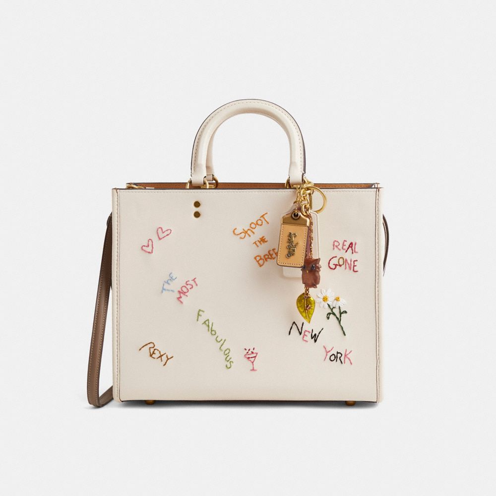 This special-edition Rogue Bag celebrates 10 years of Rogue. Reimagined in our (Re)Loved workshop and inspired by the creative expression of artistic notebook scribbling seen in our Spring 2021 Collection, it’s been cleaned, repaired, and restored. Finished with an embroidered Coach diary doodle motif, it’s crafted with care. Inspired by free spirits, rebels and dreamers, the aptly named Rogue is a go-anywhere bag. Crafted of buttery soft glovetanned leather, the roomy three-compartment design features distinctive luggage top handles and detachable straps for shoulder or crossbody wear.
