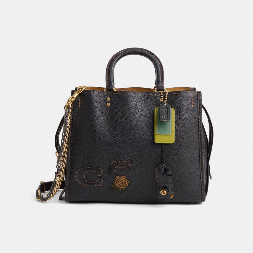 Reimagined with heritage style by Jo Espinell, Erin Kurpiewski, Meghan Ruckman, Jennifer Nashel, Brendan Dimmig and Emma Copp featuring distinctive Coach patches, mixed metal Signature chain straps and a luxe charm cluster, this top handle design has been expertly cleaned, conditioned and restored. Our talented craftsperson Ella Mulley attached a Signature chain shoulder strap and a leather mixed metal long chain strap, hand-decorated the front with Coach patches, repaired threads on gusset binding, refreshed handles and added a playful repurposed charm featuring a luxe crocodile key hood. Inspired by free spirits, rebels and dreamers, the aptly named Rogue is a go-anywhere bag crafted of our glovetanned pebble leather. The three-compartment design features glovetanned leather details, distinctive luggage top handles and detachable straps for shoulder or crossbody wear.