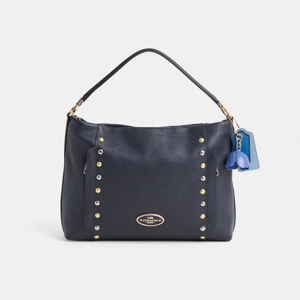 Reimagined by Eunice Chang with mixed-metal rivets for an edgy-cool vibe, this everyday style has been expertly cleaned, conditioned and restored. Our talented craftsperson Jose Reyna hand-decorated the front with gleaming studs, repaired Coach Storypatch threads, painted the corner, replaced the O-ring and added a playful repurposed charm. Crafted of polished pebble leather, the soft and slouchy Scout is a versatile everyday bag. It features an exterior zip pocket for easy access to essentials, plus interior zip and multifunction pockets.