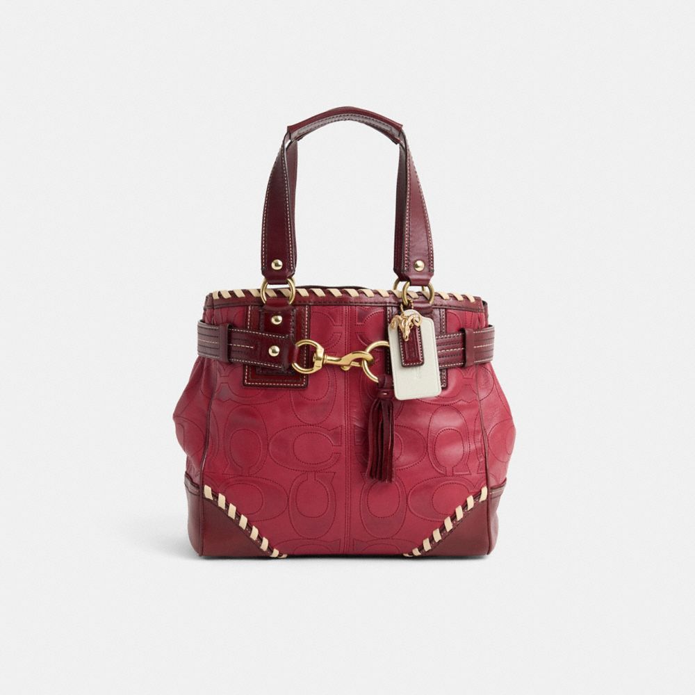 Reimagined by Savannah Sutton with sleek hand-laced whipstitching for artisanal dimension and a distinctive finish, this generously-sized style has been expertly cleaned, conditioned and restored. Our talented craftsperson Nicole Izquierdo hand-decorated the topline and front with rich whipstitching, spot-painted the piping, handles, back tab and bottom, refreshed the suede tassel, repaired tacking on back handle, then added a playful repurposed charm. Designed to hold everything you need, this spacious tote is crafted of our Signature leather with rich leather detailing. It features an inside multifunction pocket for small essentials and secures with a dogleash closure.