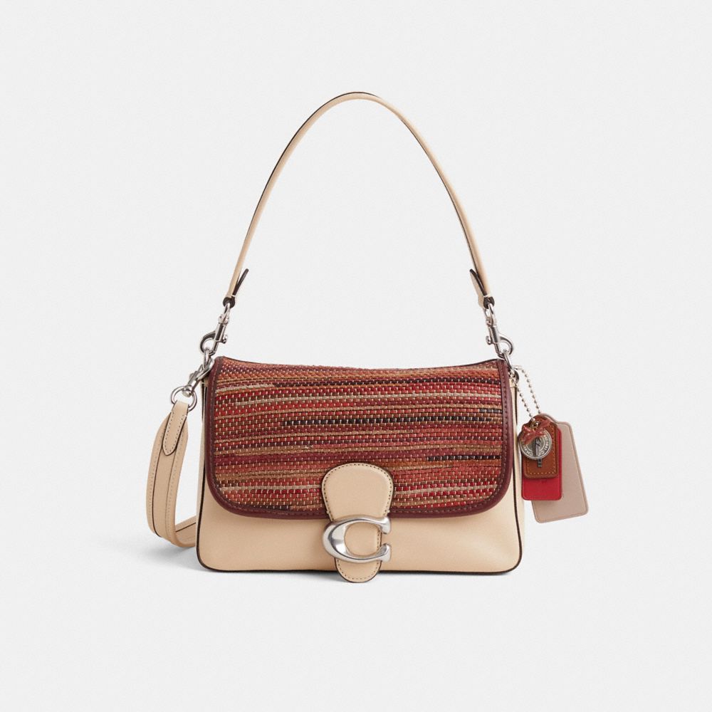 Reimagined with a striking woven leather panel in a sophisticated tonal color palette by Eunice Chang, this flap-front style has been expertly cleaned, conditioned and restored. Our talented craftspeople Nicole Izquierdo, Yngrid Pichardo Baez and Michelle Barquet incorporated a multi leather panel to the flap, replaced the binding, polished the Signature hardware and added a playful repurposed charm. The Soft Tabby reimagines our structured take on an archival 1970s Coach design with a slouchy relaxed feel. Finished with our Signature hardware for an iconic touch, this smooth leather shoulder bag features zip pockets inside and out to organize small accessories and two detachable straps to carry by hand, style as a short shoulder bag or wear crossbody.