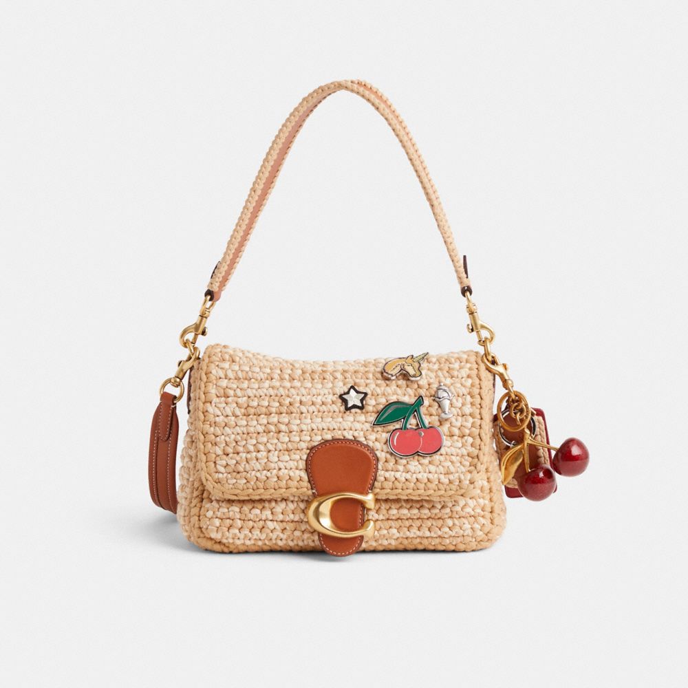 Reimagined by Rose Oliva with a cool collection of Varsity pins for a whimsical finish, this flap-front style has been expertly cleaned, conditioned and restored. Our talented craftsperson Eduardo Zhunes hand-decorated the front with striking pins, mended the crochet stitching, repaired the threading on the long strap, then added a playful repurposed charm. The Soft Tabby reimagines our structured take on an archival 1970s Coach design with a slouchy relaxed feel. Finished with our Signature hardware, this hand-knit crochet shoulder bag features glovetanned leather details, zip pockets inside and out to organize small accessories. It has two detachable straps to carry by hand, style as a short shoulder bag or wear crossbody. Requiring up to 8 hours to handcraft and assemble, even the short strap is embellished with crochet trim.