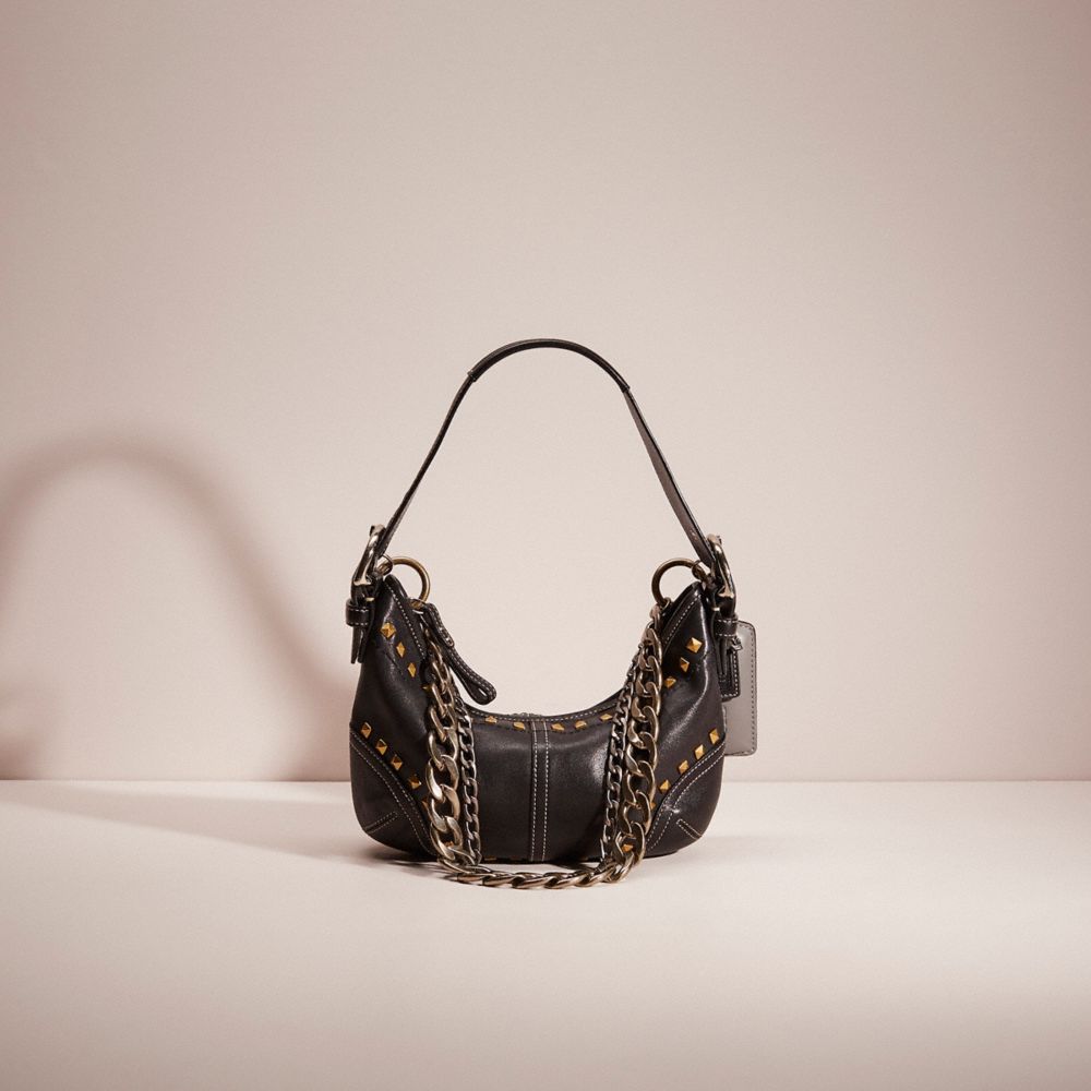 Pre-owned and now (re)loved, this Soho Small Hobo is a very special Coach upcrafted design inspired by our commitment to rethinking and reducing our impact on the planet. Saved from the landfill, this gently-worn bag was lovingly repaired and transformed by our in-house craftspeople who added clever details to give it a second life. It’s completely one-of-a-kind, and comes with its own unique set of charms. Wear it, love it, pass it on.