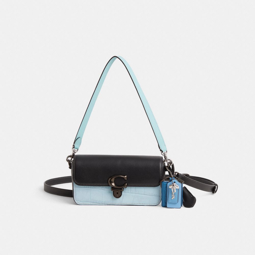 Reimagined with a bold pop of color and an exotic vibe by Eunice Chang featuring a croc-embossed leather panel, this flap-front style has been expertly cleaned, conditioned and restored. Our talented craftspeople Jose Reyna, Lucas Ortiz and Yngrid Pichardo Baez incorporated a pastel pop panel on the outside pocket, attached a short strap in a matching blue hue, then added a playful repurposed charm. This aptly named bag was dreamed up in the Coach Design Studio. Finished with an archive-inspired Signature push-lock closure, this compact 20 is crafted of buttery soft glovetanned leather with plenty of pockets to keep you organized on the go. Detachable straps let you carry by hand, style as a short shoulder bag or wear crossbody.