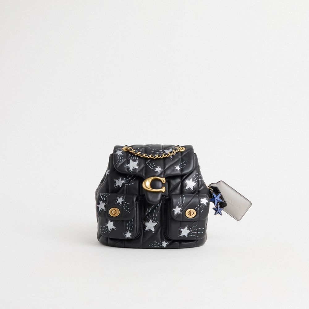 Reimagined with a star-studded attitude featuring a glittering shooting star motif deftly hand-painted by Rose Oliva, this compact style has been expertly cleaned, conditioned and restored. Our talented craftsperson Jose Reyna repaired the leather on the chain strap, then added a playful repurposed charm. A modern take on an archival 1970s Coach design, our versatile Tabby backpack is a hybrid style that easily converts from backpack to crossbody or shoulder bag. Crafted of quilted plush, ultra-soft nappa leather, it has convenient cargo front pockets detailed with our iconic turnlock closures and adjustable leather-and-chain back straps that convert to a crossbody strap. It’s finished with our Signature hardware for a heritage touch.