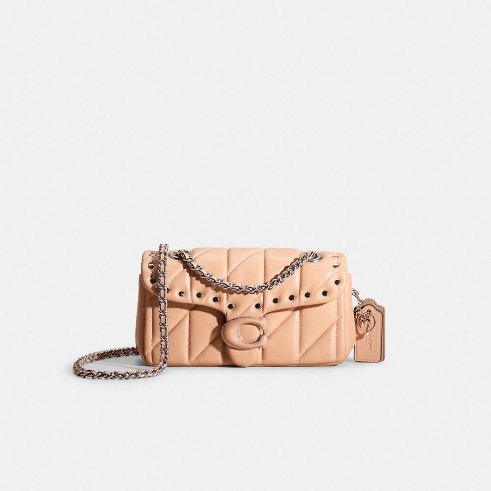 Reimagined with metallic accents for a touch of shine by Eunice Chang, this flap-front style has been expertly cleaned, conditioned and restored. Our talented craftsperson Jose Reyna hand-decorated the flap with silvery border rivets, spot-painted the back pocket and added a playful repurposed charm. A modern take on an archival 1970s Coach design, our structured Tabby shoulder bag is crafted of quilted plush, ultra-soft nappa leather. The petite 20 features a long leather chain strap to wear crossbody or double up for a shorter, dressier look. It’s finished with our tonal Signature hardware for an iconic touch.