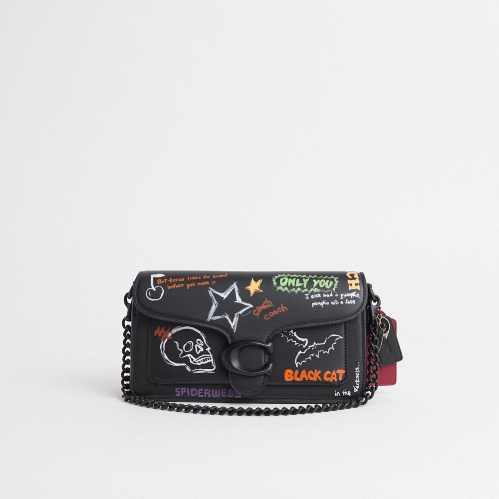 Intricately hand-painted by Rose Oliva with a frightfully fun Halloween doodle motif inspired by the creative expression of rebel punk artwork, this flap-front style has been expertly cleaned, conditioned and restored. Detailed with an assortment of wickedly cute figures mixed with clever thoughts and phrases, it’s finished with a chain shoulder strap, long leather strap and a playful repurposed charm. A modern take on an archival 1970s Coach design, our structured Tabby shoulder bag is crafted of our buttery soft glovetanned leather. Finished with durable tonal matte PVD coated hardware and our Signature, the compact 26 features two detachable straps to carry by hand, style as a short shoulder bag or wear crossbody.