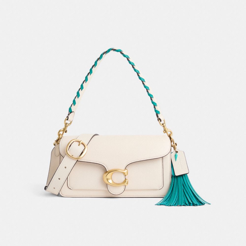 Reimagined with a graphic pop by Savannah Sutton featuring hand-laced whipstitching and a swingy leather tassel for a distinctive finish, this flap-front style has been expertly cleaned, conditioned and restored. Our talented craftspeople Ella Mulley, Nicole Izquierdo and Yngrid Pichardo Baez embellished the shoulder strap with sleek whipstitching, attached a leather tassel in a matching hue, spot-painted the back pocket, then added a playful repurposed charm. A modern take on an archival 1970s Coach design, our structured Tabby shoulder bag is crafted of polished pebble leather. Finished with our Signature hardware for an iconic touch, the compact 26 features two detachable straps to carry by hand, style as a short shoulder bag or wear crossbody.
