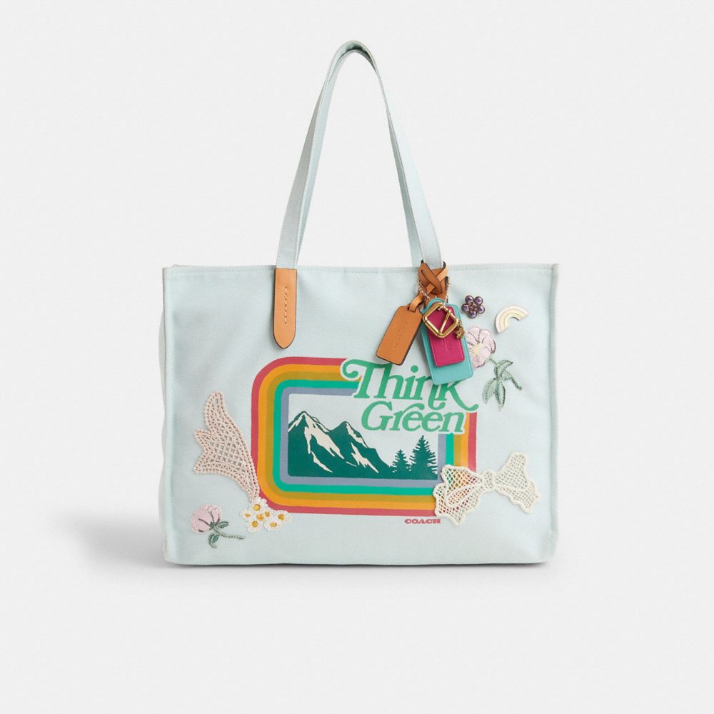 Pre-owned and now (re)loved, this Tote 42 is a very special Coach upcrafted design inspired by our commitment to rethinking and reducing our impact on the planet. Saved from the landfill, this gently-worn bag was lovingly repaired and transformed by our in-house craftspeople who added clever details to give it a second life. It’s completely one-of-a-kind, and comes with its own unique set of charms. Wear it, love it, pass it on.