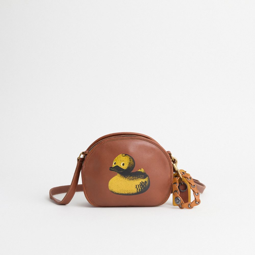Reimagined by Eunice Chang with a playful nostalgic toy duck motif whimsically hand-painted by Jose Reyna, this zip-top style has been expertly cleaned, conditioned and restored. Our talented craftsperson Jose Reyna repaired threads and added a playful repurposed charm. This vintage Small Canteen Bag is a beloved Coach silhouette first introduced in 1995. Crafted of soft glovetanned leather, this petite design unzips to a luxe leather lining with inside slip pockets. An outside slip pocket gives easy access to essentials.