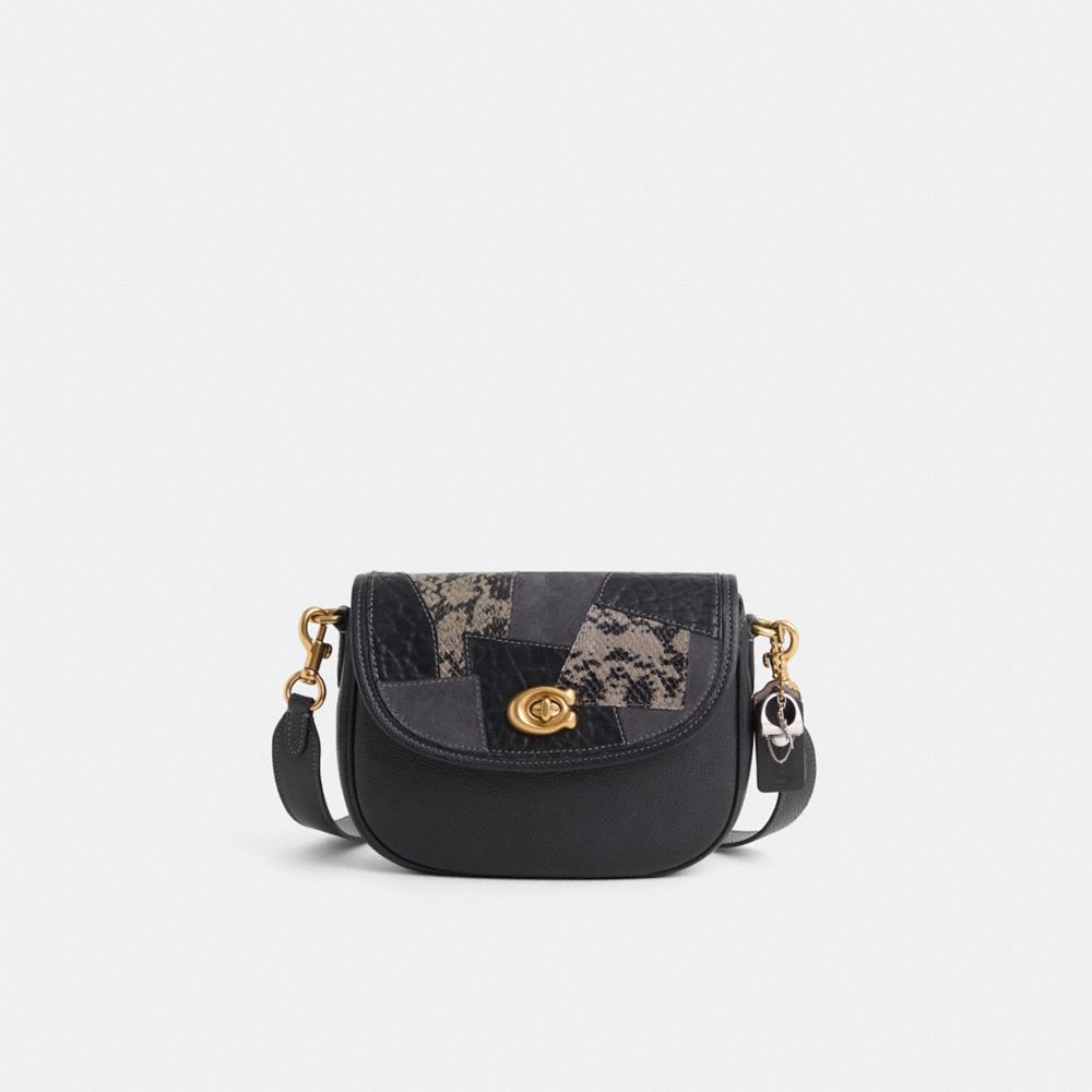 Reimagined with a dynamic textural patchwork featuring a luxe mix of leathers and velvety suede by Eunice Chang, this equestrian-inspired style has been expertly cleaned, conditioned and restored. Our talented craftspeople Jose Reyna, Alfred Deaza and Yngrid Pichardo Baez hand-decorated the flap with an assortment of Coach remnant materials in embossed leathers and smooth suede, replaced the Signature turnlock, repaired threads, then added a short strap and a playful repurposed charm. Not too big, not too small, Willow Saddle has space for all of the essentials–phone, wallet, keys and more. The polished pebble leather design secures with our Signature turnlock and is finished with interchangeable straps for versatile styling.