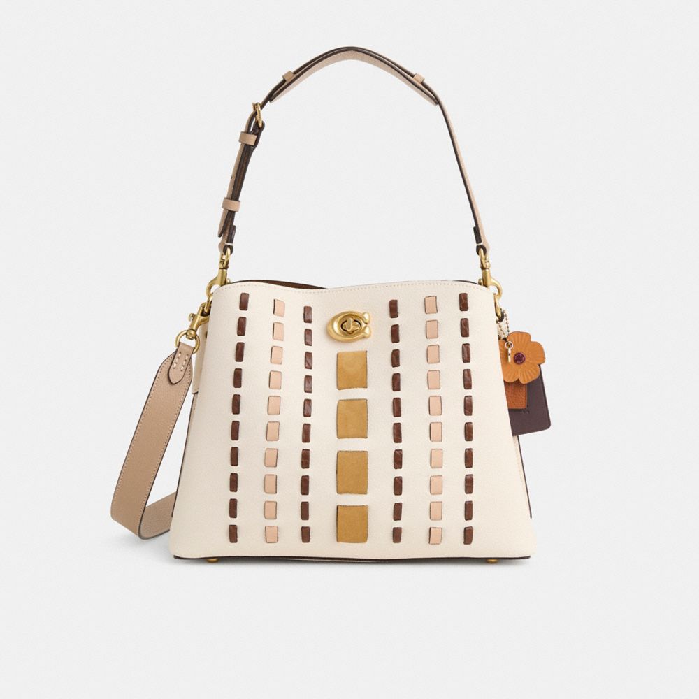 Pre-owned and now (re)loved, this Willow Shoulder Bag is a very special Coach upcrafted design inspired by our commitment to rethinking and reducing our impact on the planet. Saved from the landfill, this gently-worn bag was lovingly repaired and transformed by our in-house craftspeople who added clever details to give it a second life. It’s completely one-of-a-kind, and comes with its own unique set of charms. Wear it, love it, pass it on.