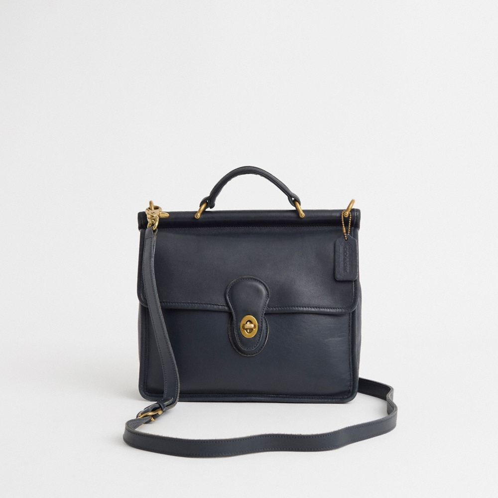 COACH®,Vintage Willis Bag,Leather,Satchel,Logo,Adjustable,Work,Casual,Black,Angle View